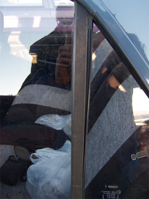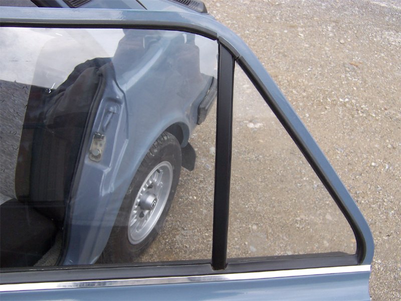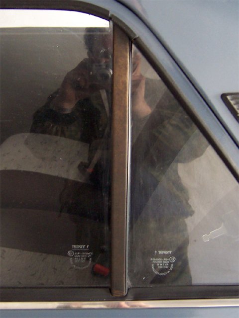 2007.05.05 - oprava stĺpika trojuholníka ĽZ dverí - oprava doliehania tesnenia, prestriekanie čiernou matnou farbou Treba uvoľniť stĺpik (dve skrutky), stiahnuť spúšťacie okno dole, trojuholníkové sklo vybrať von, tesnenie zo stĺpika vytiahnuť, do stĺpika natlačiť transparentný silikón, poskladať to v opačnom poradí a dotláčať sklo do stĺpika, prípadne aj vypodložiť sklo z druhej strany, aby doliehalo. Postupne takto poopravujem a prestriekam aj ostatné stĺpiky.