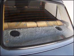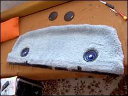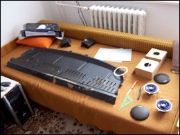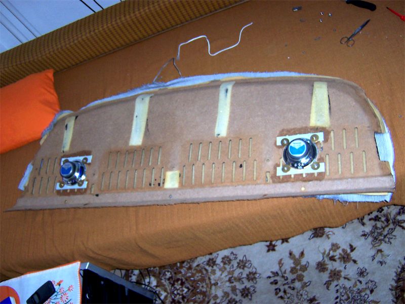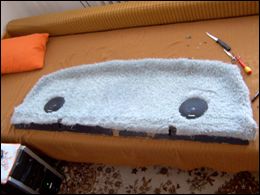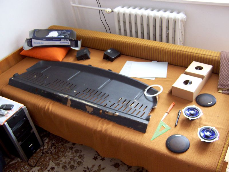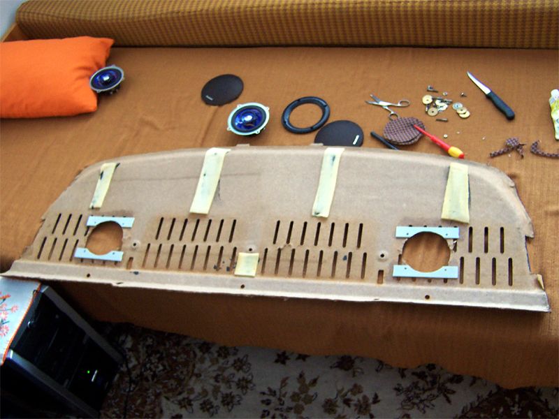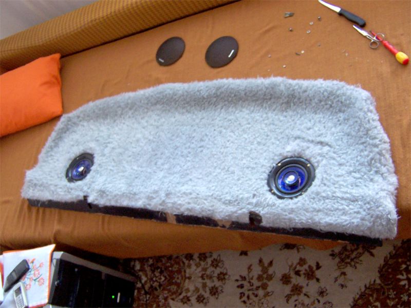 2005.03.19 - montáž repro do zadného plata (Panasonic CJ-A1000, 10cm, 70W, 2-pásmové)