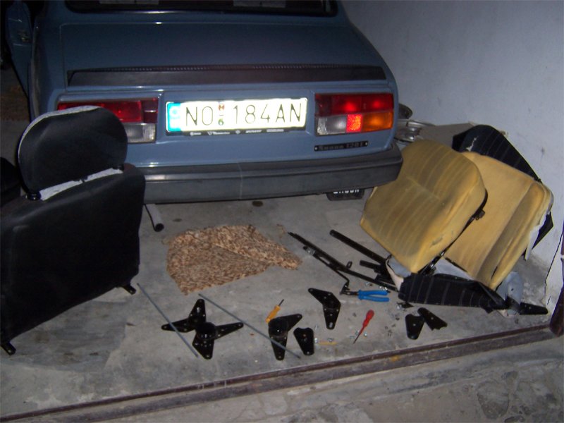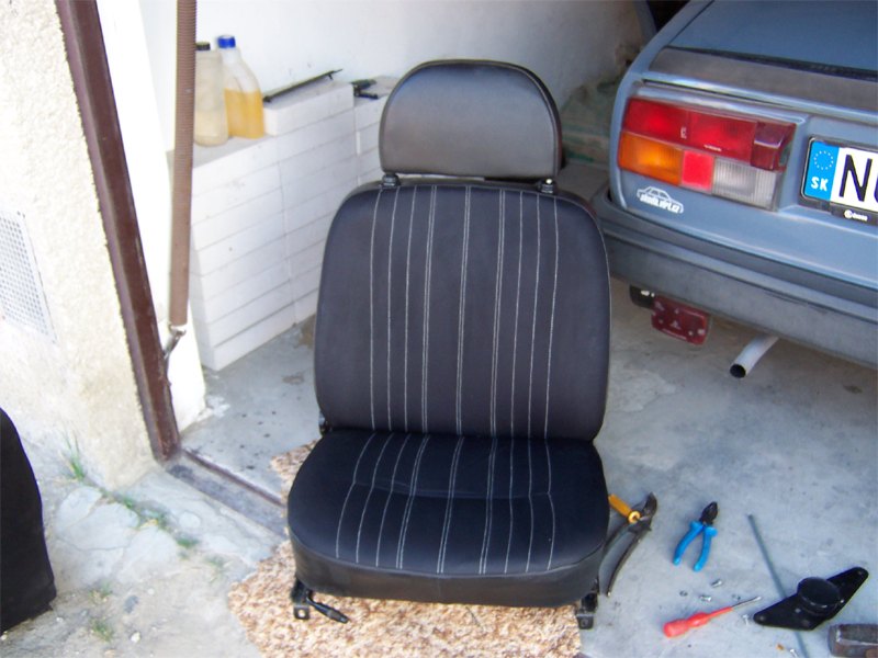 2007.04.21 - oprava podlahy, oprava predných sedačiek Podlaha - obrúsil som jemné fliačiky hrdze, pozatieral základnou farbou, celkovo obrúsil a opravil popraskaný Plastizol, nakoniec zjednotil farbu podlahy hliníkovým nástrekom (dobrá antikorózna ochrana). Koberce vytepované. Ručná brzda - Chcel som rozhýbať jej občas zasekávajúce sa tlačidlo, pri manipulácii mi to tlačidlo však úplne "vyfrnglo" von a tak nezostávalo nič iné, ako vybiť čap páky (pre uvoľnenie páky zo závesu a prístup k nasadeniu tlačidla) a tlačidlo osadiť. Vloženie čapu páky späť na svoje miesto bol však riadny pôrod a nervy, ale nakoniec sa podarilo a mohol som spraviť to, čo bolo prvotným cieľom - prestriekať páku ručnej brzdy :-) Predné sedačky - Vodičova sedačka bola už značne presedená, čo by mi až tak nevadilo... Ale posledné dva mesiace už bolo pri riadnom opretí cítiť železo kostry v krížovej oblasti chrbtice :/ Podarilo sa mi zohnať druhú sedačku v super stave. Bola však spolujazdcova (tzn. menej sa na nej sedelo) - s kolieskom korigácie sklonu na opačnej strane a mala zničený originál poťah (prepálená koženka od slnka). A tak som obidve sedačky rozobral do poslednej skrutky a skombinovaním dielov prerobil spolujazdcou super sedačku so zničeným poťahom na vodičovu sedačku so super poťahom zo starej sedačky :-) Ako sa ukázalo po rozobratí starej sedačky, jej molitanová výplň bola značne zničená (či už sedák alebo operadlo), a podľa druhej sedačky poriadne presedená (čo na fotkách akosi nevidno). U spolujazdcovej sedačky v aute som zamenil vybehané koľajničky a vykývanú opierku hlavy. To sa už teraz sedí :-) |