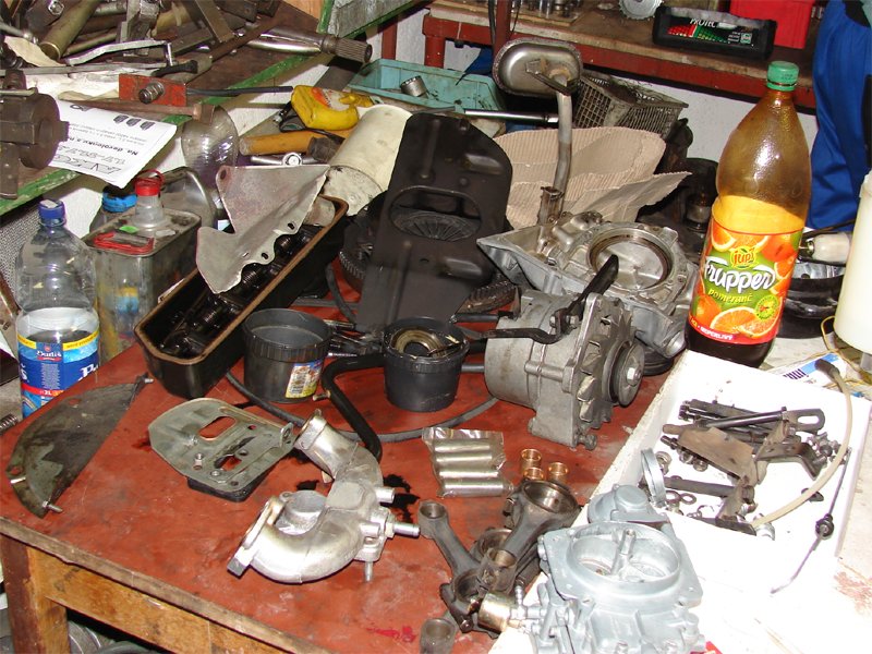 2007.07.28 - GO motora (doložené aj fotky z trochu neskoršie kúpených nových súčastí) Prečo GO? Motor mal už toho za 19 rokov života za sebou dosť. Stav vôbec nezodpovedal kilometrom. 102 000 km pre takýto motor by za "normálneho" jazdenia bolo ešte dosť málo na generálku. Avšak nespočetné množstvo "pobehávačiek" počas celej doby na veľmi krátke vzdialenosti (studený motor, mesto, mrazy) prispelo k skorému opotrebovaniu. Rovnako motoru neprospelo ani niekoľko bohužiaľ nekvalitných opráv tesnosti hlavy valcov. Po poslednej poruche, kedy aj po snahe opraviť to, prenikala naďalej chladiaca voda do mazania, som rozhodol o GO. Pre riadnu opravu bolo potrebné tak či tak rozoberať motor, robiť nové presahy valcov, rovnať hlavu...už by to proste nemalo význam skladať motor so starými dielmi (motor by ale po takejto oprave ešte určite pojazdil, ale už to nebolo ono, ťah mal síce OK, ale už klepkali piestne čapy, žral olej...). Kedže novú piestnu sadu som mal už pár mesiacov "skladom" (neplánovane), bolo rozhodnuté: kompletná GO motora, so všetkým, tak ako sa patrí. Všetko opotrebovateľné sa vymenilo, resp. opravilo podľa noriem. Výsledkom je takmer nový motor. Čo sa zrobilo: - komplet vyčistený blok motora - nové valce, piesty, piestne čapy, krúžky - nové púzdra ojníc, preúhlovanie ojníc - kľukový hriadeľ po 1. výbruse - nové panvičky, ložiská, guferá, tesnenia... - nové rozvody, nové zdvihátka ventilov - hlava valcov prebrúsená (- 0,2 mm), zabrúsenie sediel ventilov, výmena ventilov + nahodené guferá ventilov (doteraz neboli) - nový rozdeľovač, komínok rozdeľovača, nová benzínová pumpa, nový karburátor, nový (super zrepasovaný) štartér, nová spojková lamela, spojkové ložisko - nové sviečky, filtre atď. Výsledok: motor štartuje ako nikdy predtým (vždy na prvý brnk), nulová spotreba oleja a vody, a ten zvuk...krása |