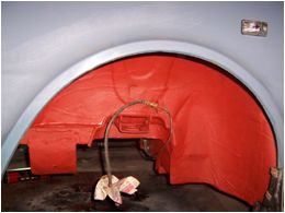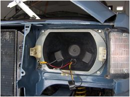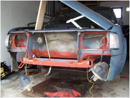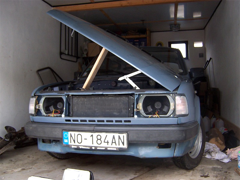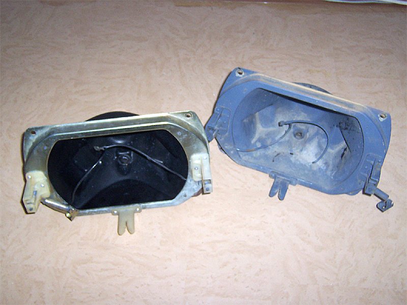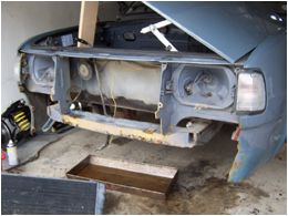 ......................................................................................................................................................................................... Repas držiakov svetiel, dokončenie kompletizácie auta (18.03.2008 - 21.03.2008): Oškrabanie celozastriekaných "hrncov" predných svetiel, očistenie, vybrúsenie, náter železných častí.