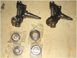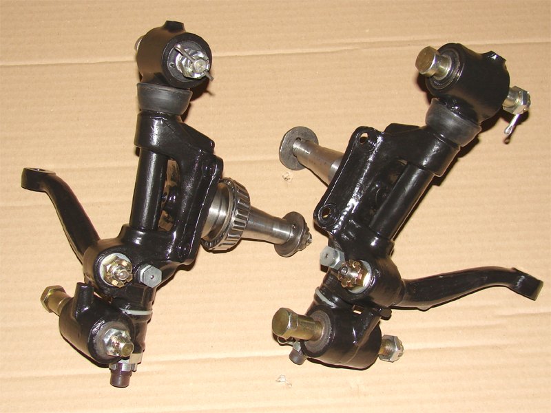 2007.12.20 - GO prednej nápravy, bŕzd a riadenia - doplnené 21.03.2008 Kedže už dlhší čas som pozoroval menšie/väčšie nedostatky stávajúcej prednej nápravy na aute (vôľa v zavesení kolies, vibrácie do volantu, tuhé riadenie...), rozhodol som sa pre generálku prednej nápravy. Odstaviť auto pre tento úkon na dlhšiu dobu som nechcel, a opravovať nápravu "narýchlo" výmenou len nutne potrebných dielov som zas nepovažoval za najlepšie riešenie. Preto som si zaobstaral druhú nápravu a rozhodol som pre stavbu novej prednej nápravy "od piky" s použitím čo najväčšieho možného počtu nových dielov. Rozobratie nápravy nebolo jednoduché. Predsa len 20 rokov "provozu" nápravy urobilo svoje. Oddelenie ramien od nápravnice bolo najjednoduchšie. Horšie to bolo s rozborkou samotných ramien, s demontážou čapov ramien a zvislých čapov od ramien... Tam sa musela použiť tvrdá sila, pílenie čapov, odvŕtavanie a bola to práca do úmoru :-(. Nápravnica starej nápravy sa neskôr ukázala ako nevhodná na stavbu. Tlakové opieskovanie jej značnej korózie ju podľa mňa dosť oslabilo. Preto som nápravnicu zohnal druhú, tentoraz už veľmi peknú (na fotkách je to tá v červenej základnej farbe). Tým pádom sa z "hrubého" materiálu starej nápravy použili na stavbu novej už len vrchné a spodné ramená, ktoré boli v dobrom stave. Nákup nových dielov nebol jednoduchý, dnes sa predávajú už len najnutnejšie veci, aj to už len v pochybných kvalitách a preto mi nezostávalo nič iné, ako zháňanie, zháňanie, zháňanie... a ešte raz nejednoduché zháňanie starých originálnych dielov v predajniach po niekoľkých mestách, po niekoľkých ľuďoch, balíkoch... Celá náprava sa skladá z desiatok dielov, v literatúrach sa uvádza myslím okolo 200 dielov, dielíkov... Väčšina pracovných úkonov bola zvládnuteľná aj bez špeciálnych uvádzaných prípravkov, častokrát si to ale vyžadovalo vymýšľanie "vlastných" postupov prác a tým pádom predlžovanie celej činnosti... Čo všetko sa zrobilo: