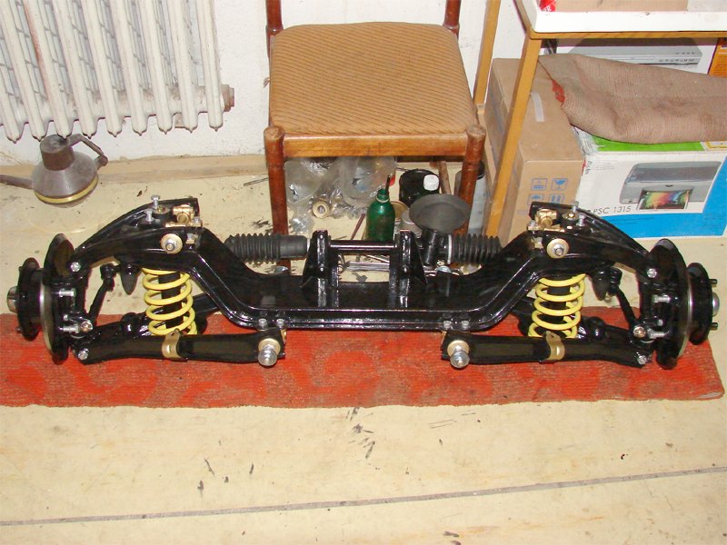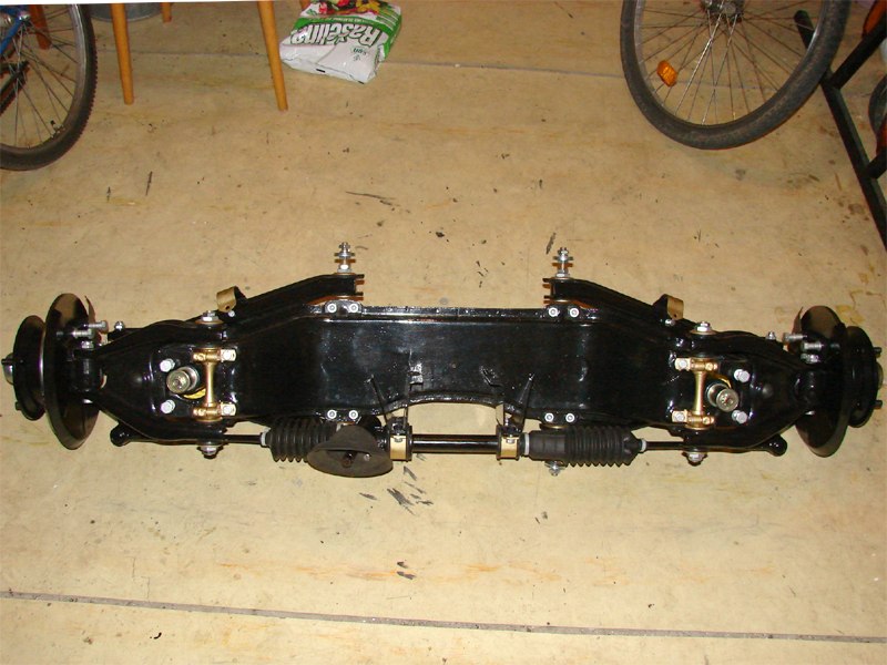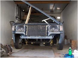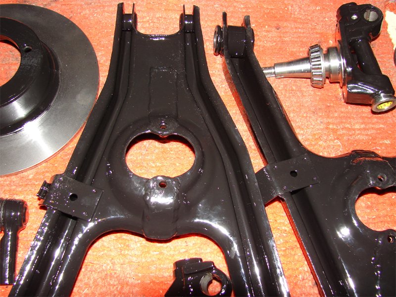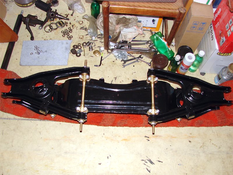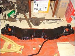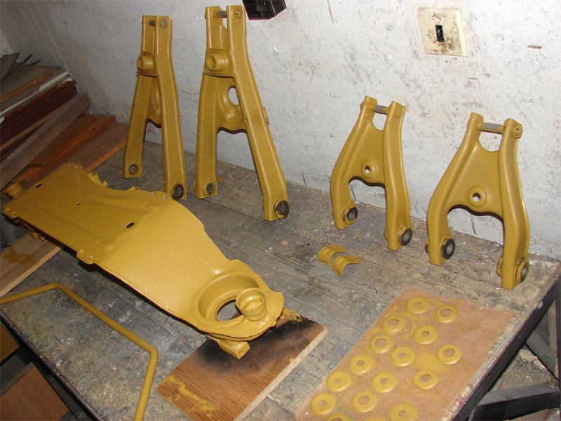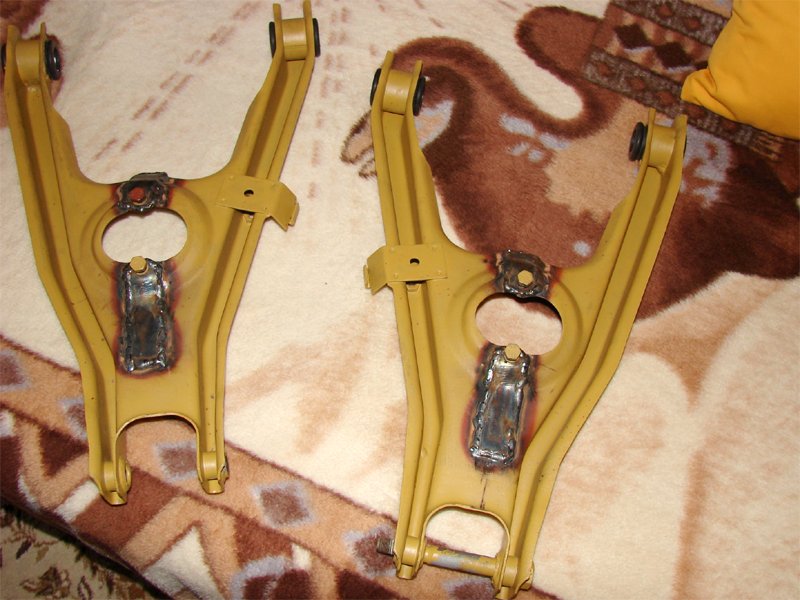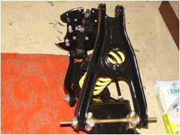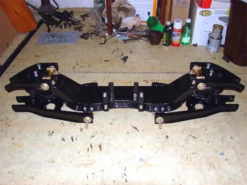 ......................................................................................................................................................................................... Pieskovanie a povrchová úprava (18.10.2007 - ...): Pieskovanie nápravnice a ramien, náter základnou farbou, výroba a privarenie výztuh úchytov tlmičov na spodných ramenách.