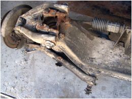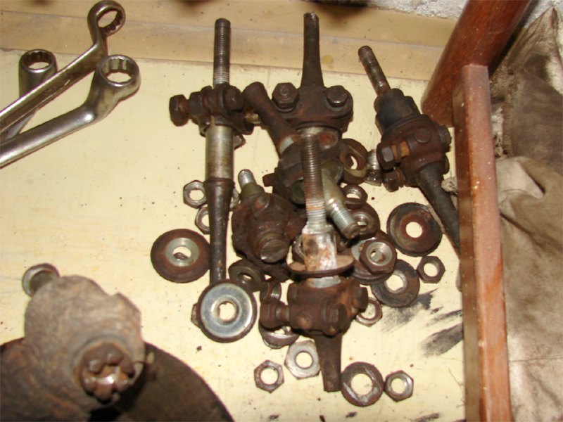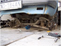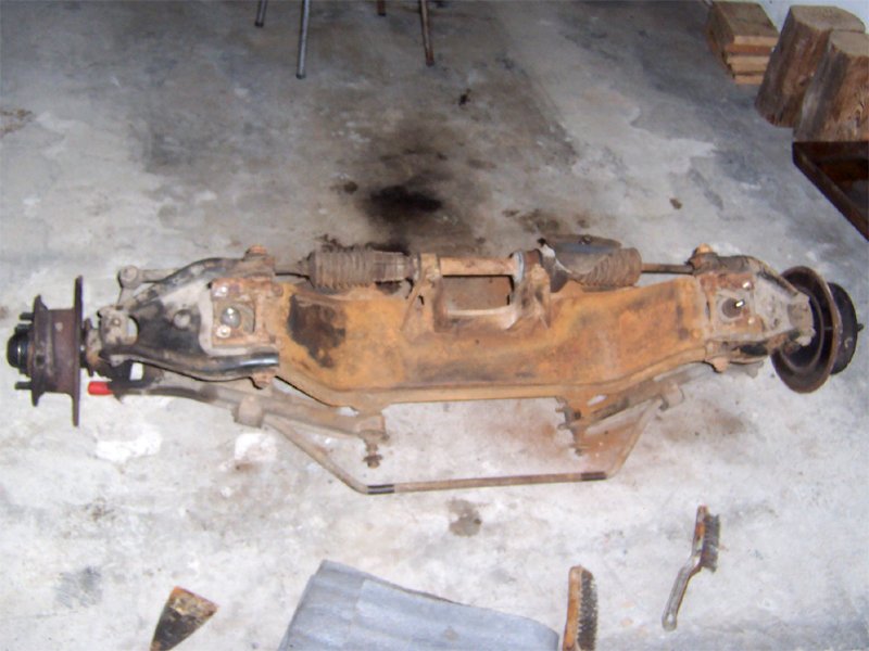 Dovoz a rozoberanie (05.10.2007 - 11.10.2007: Očista nápravy od hrubej špiny, demontáž a rozobratie ramien, demontáž riadenia, pružín, tlmičov...