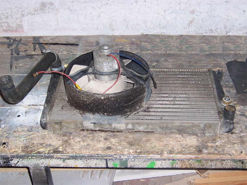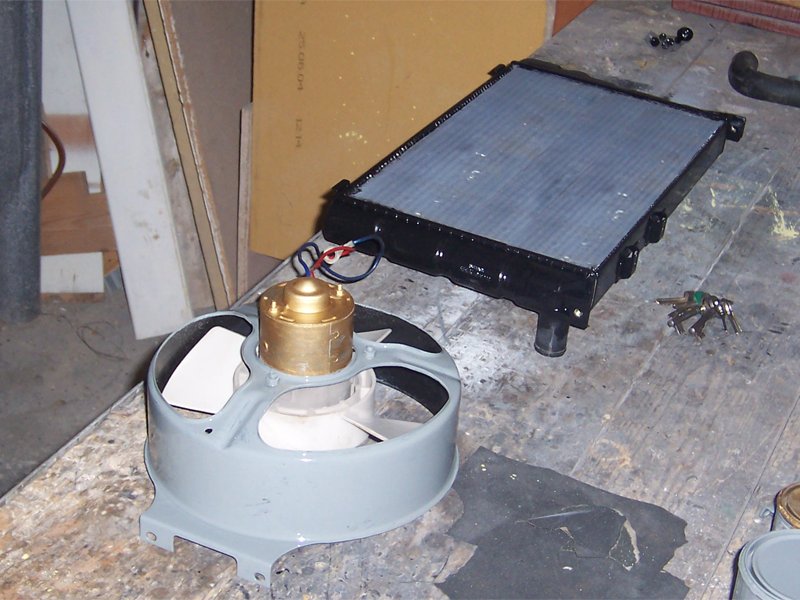 ......................................................................................................................................................................................... Repas chladiča a ventilátora chladiča (04.03.2008 - 06.03.2008): Očista z vonka i z vnútra, obrúsenie železných častí, natieranie...
