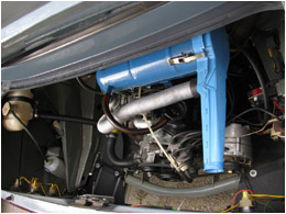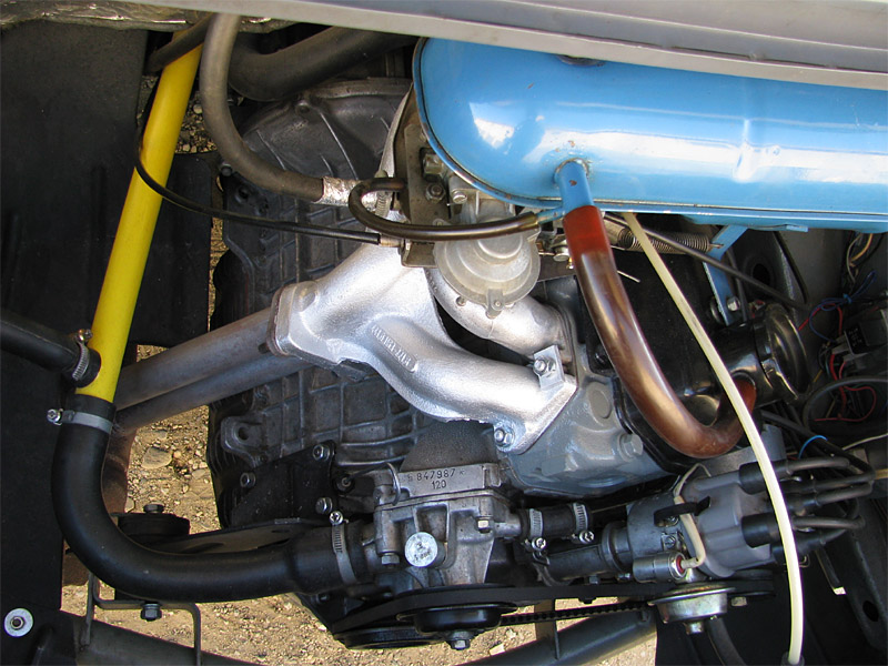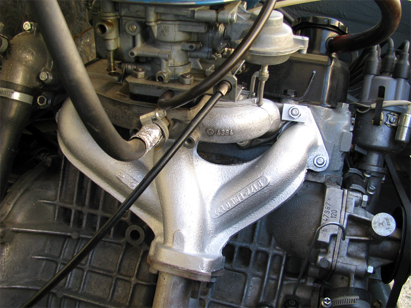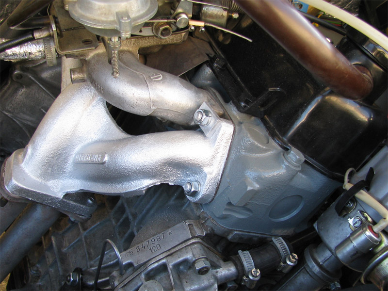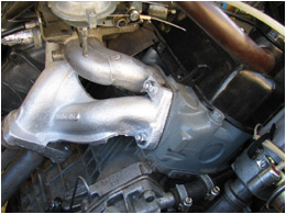 2009.09.14 - náter hlavy valcov motora + náter výfukových parohov Hlava valcov a krycí plech zvodov výfuku natreté šedým Alkytonom, výfukové zvody od hlavy (parohy) natreté 2x vypaľovacou striebrenkou - obidve vrstvy samostatne vypálené.