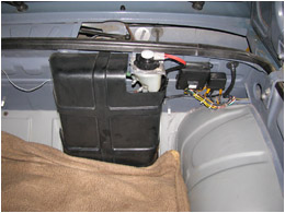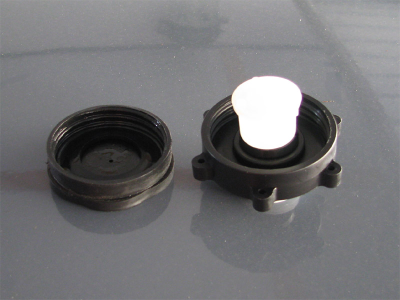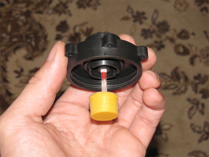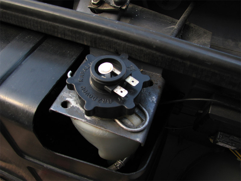 2009.10.05 - Veko brzdovej kvapaliny s kontrolkovým spínačom klesnutej hladiny Z dôvodu, že sériové zapojenie elektroniky kontrolky bŕzd vozu Škoda 120 je takmer bezvýznamné (sériovo zapojená kontrolka je rozsvecovaná mechanicky len pri veľkom poklese brzdového pedálu pri brzdení), rozhodol som sa toto zapojenie decentne upraviť - doplňiť :) Podľa získaných informácií sa do automobilov Škoda 1203 montovali víčka nádobiek brzdovej kvapaliny s plavákovým spínačom kontrolky hladiny kvapaliny, ktoré bez úprav pasujú do Š 105 / 120. Takéto víčko som však nezohnal a v mototechne mi bolo ponúknuté víčko na Favorita. To je na moje prekvapenie zámenné s vikom na Š 120, má v sebe plavák a stále sa vyrába ako náhradný diel, takže kúpa bez starostí :) Pri testovaní funkčnosti plaváku favoriťáckeho víčka na škodováckej nádobke brzdovky som však narazil na problém, a to taký, že tento plavák je príliš široký a pre jeho hladký chod v kvapaline v nádobke zavadzajú prepážky brzdových okruhov. Plavák je potrebné vyrobiť iný, menšieho priemeru a osičku, na ktorú je plavák pripevnený si upraviť na potrebnú dlžku, aby sa kontrolka spínala pri patričnom poklese hladiny. Na výrobu nového plaváka som použil plastový vrchnák fľaštičky kvapiek od kašla :) Vrch plaváku som uzavrel časťou odrezanou z pôvodného plaváku + vodotesne zalepil tavným lepidlom. Elektrické pripojenie kontaktov víčka je veľmi jednoduché - jeden káblik na poistku č. 2 (+), druhý káblik na konektor existujúcej kontrolky v prístrojovke, resp. na kontakt č. 16 spínacej skrinky. V takomto zapojení sa kontrolka poruchy bŕzd rozsvedcuje na tri rôzne impulzy: - pri štartovaní motora - kontrola fuknčnosti žiarovky kontrolky (sériová funkcionalita) - pri poklese brzdového pedála nad stanovenú úroveň (obvykle až na zem) - sériová funkcionalita - pri poklese hladiny brzdovej kvapaliny v zásobnej nádržke (u mňa cca 5 mm od hornej hranice MAX) |
