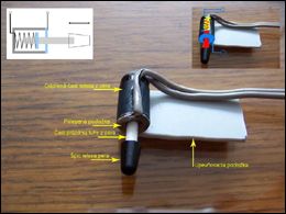 Osvetlenie odkladacej priehradky LED diódami V poradí tretím prvkom osvetľovania mojej palubovky sa stala odkladacia priehradka. Podnetom bolo pre mňa osvetlenie tejto časti v služobnom aute Dacia DoubleCab :-) a fakt, že po tme som v nej nikdy nemohol nič nájsť (kľúče a pod.). Hneď od začiatku som vedel, že do priehradky nechcem rezať žiadne diery (na žiarovku), že osvetlenie by nemalo zaberať žiadne, alebo minimálne miesto, a že by malo svietiť len pri zapnutých svetlách a otvorení priehradky. Po zvážení možností som sa rozhodol na vyklápací mechanizmus zabudovať nejaký mikrospínač (tlačidlo), ktorý by zapínal osvetlenie po odklopení. Doma, ani v elektro predajniach som nič vyhovujúce nezohnal, tak som po dĺĺĺhom premýšľaní vyrobil nejaké to tlačidlo podľa vlastnej fantázie z najdostupnejšieho materiálu, ktorým sa mi stalo obyčajné „šťukacie“ pero. Popis viď obr. 1.